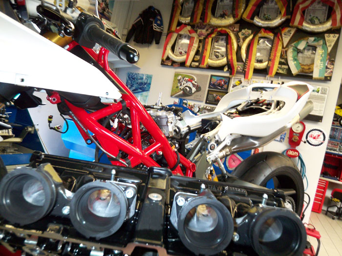 Dankbare Rennfahrer bringen ihre Trophäen. So stellt man sich eine deutsche Werkstatt vor. Sauber, ordentlich und penibel liegt hier alles auf seinem Platz.